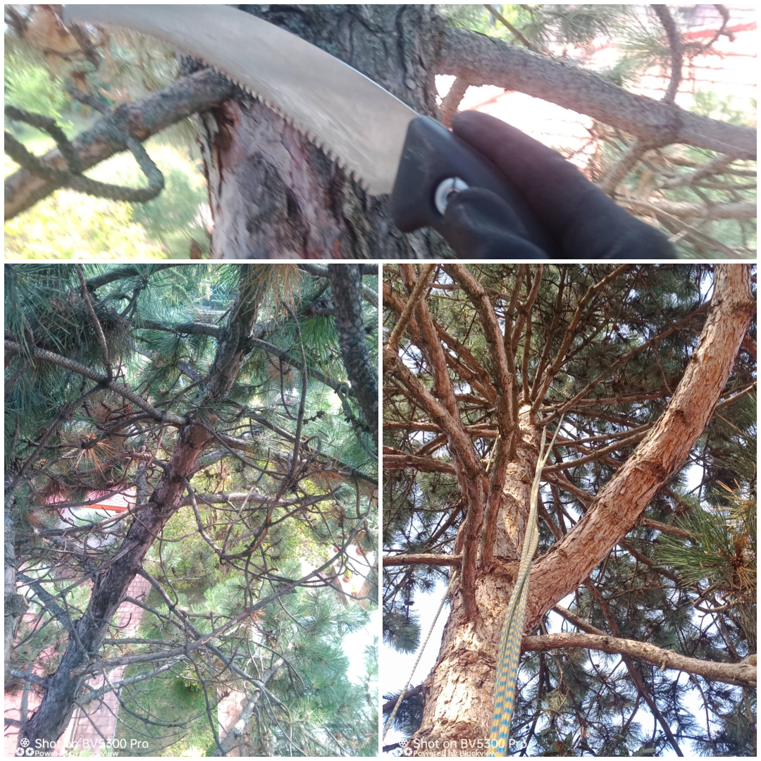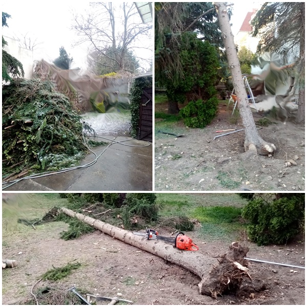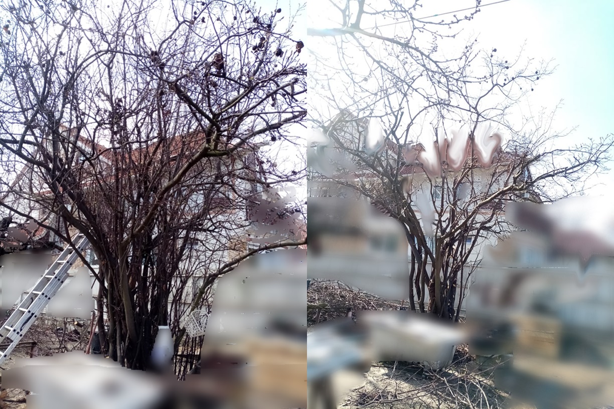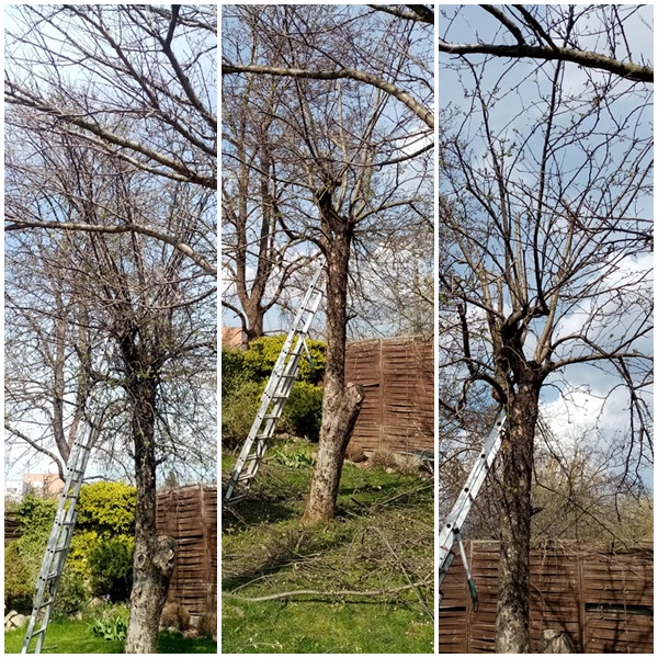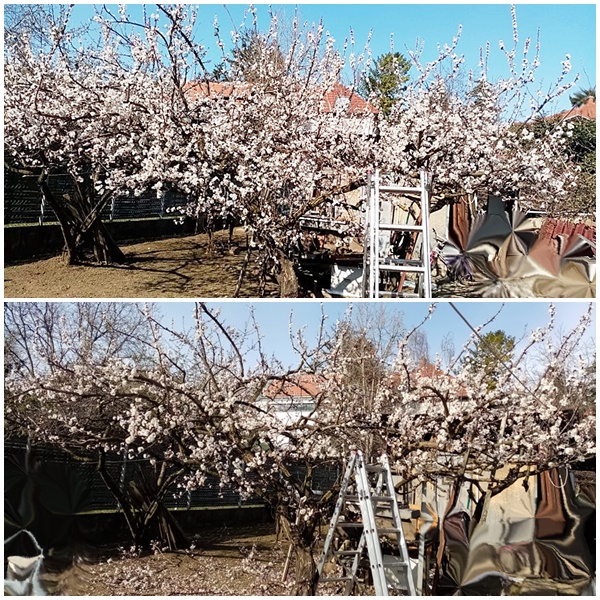 Öreg barackfa metszés előtt és után Viharkárosult alamafa metszése, sebkezelés