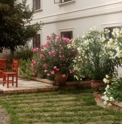 Leanderek belső kertben Bambuszok ládában